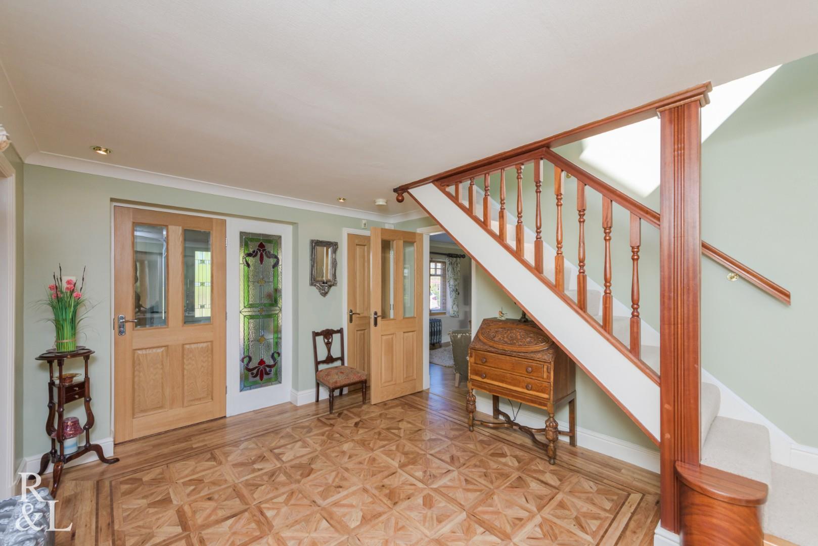 The principal suite has a picture pitched floor to ceiling window which lets the light flood in and overlooks countryside. This room also has a deluxe dressing room and en suite. The acoustics in this room really do have to be appreciated. There are three further double bedrooms one having an en-suite shower room and built in wardrobes and bedroom three has built in wardrobes. The fourth bedroom has dual aspect windows.